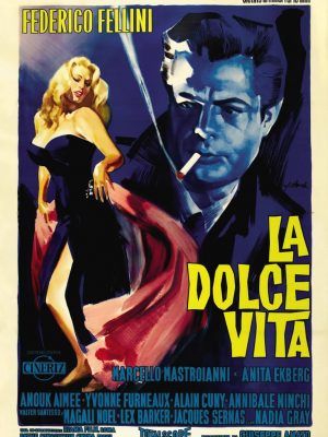 Las calles de una Roma de post guerra constituyen el escenario en el que se desarrolla esta historia, cuyo hilo conductor es Marcello, un periodista de la prensa del corazón que nos muestra el vacío de la alta sociedad y sueña con dar un giro a su vida. Tras ser enviado al aeropuerto a recibir a una famosa estrella de cine, Marcello queda prendado de ella y le propone llevarla a recorrer la ciudad. Su recorrido termina con un baño en la Fuente de Trevi, donde él, sorprendido por el excéntrico proceder de la chica, le confiesa su admiración. Con el amanecer, la magia de la aventura se disuelve?