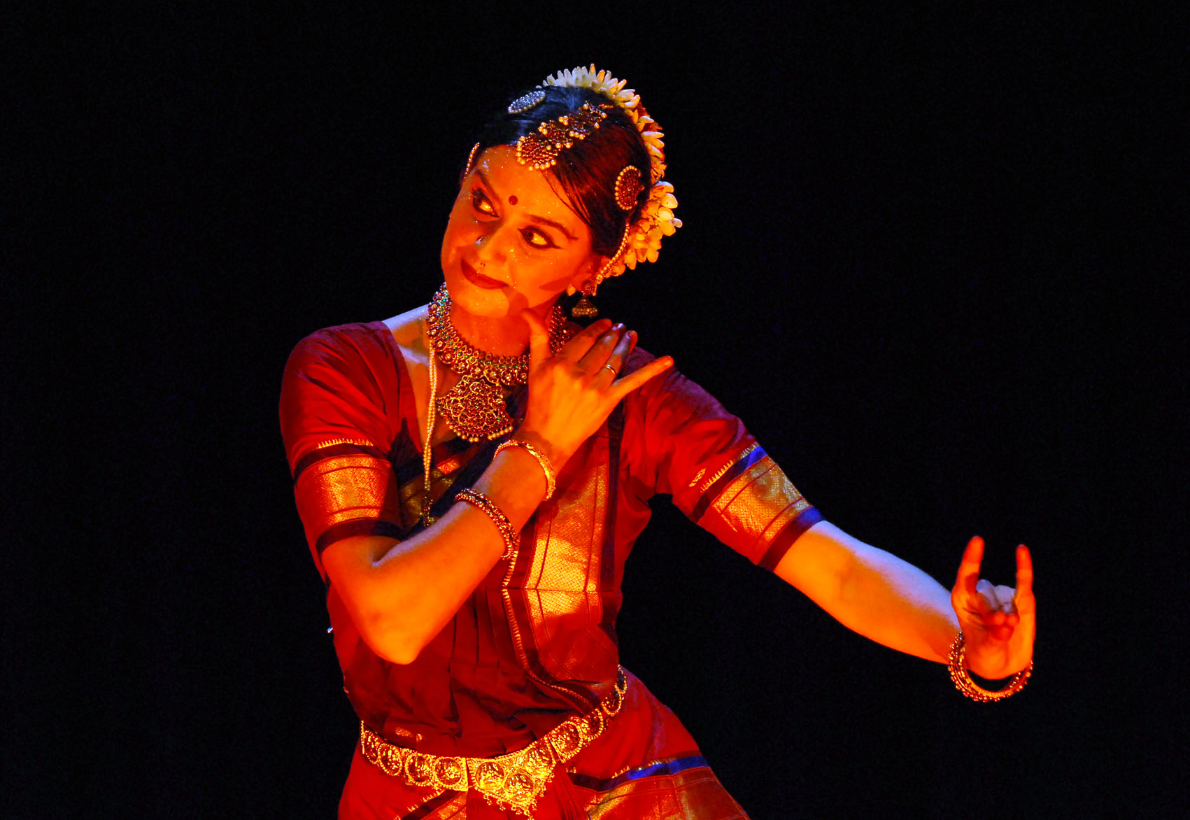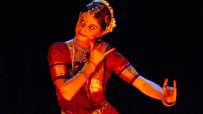 Bharata natyam es una de las danzas más antiguas provenientes de India y está vinculada al culto de las devadasis o bailarinas sagradas en los templos dentro de la liturgia de los dioses. Generalmente esta danza se presenta como un solo en el que se alternan secuencias de danza abstracta no representativa con danza mimética expresiva. La bailarina lleva a cabo complejas secuencias rítmicas y describe, o más bien sugiere, a través de un lenguaje corporal codificado y mudras, estados anímicos y situaciones dramáticas.